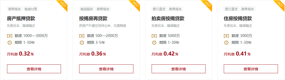 房产贷款:住宅、公寓、写字楼、商铺、厂房都能贷。