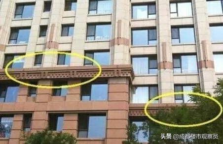 腰线层:腰线是开发商为了楼的美观做的装饰,使得楼栋看起来更加有层次感。但是腰线层的问题也比较多,诸如影响采光、容易积水和产生杂物 、产生被盗风险等等。